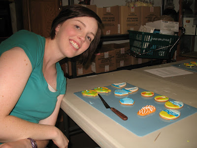 Rebecca and I attended a Cookie Decorating Class on Tuesday at our favorite Chocolate store in town, Choc-Oh!-Lot! We each had several sugar cookies that we decorated with Royal Icing. Amy was our teacher. She is a professional cookie decorator! We had a great time learning from her and learning how to decorate cookies! We look forward to trying these recipes at home. Enjoy the pictures.